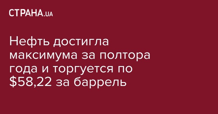 Как сообщала "Страна", в пятницу, 30 декабря, цены на нефть продолжают расти, установив рекорд последних шести месяцев. По состоянию на 7.00 стоимость мартовских фьючерсов на нефть Brent выросла на 0,44% — до $57,10 за баррель. Цена февральских фьючерсов на нефть WTI подорожала на 0,35% — до $53,96.