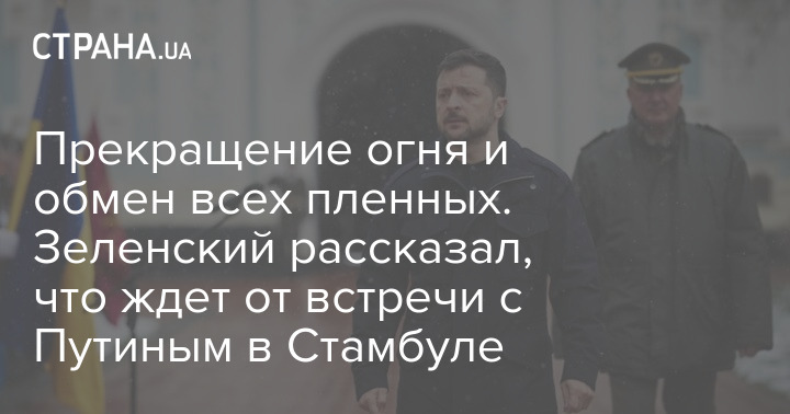 Президент Украины Владимир Зеленский ждёт от встречи с российским лидером Владимиром Путиным в Стамбуле прекращения огня и обмена всех пленных.