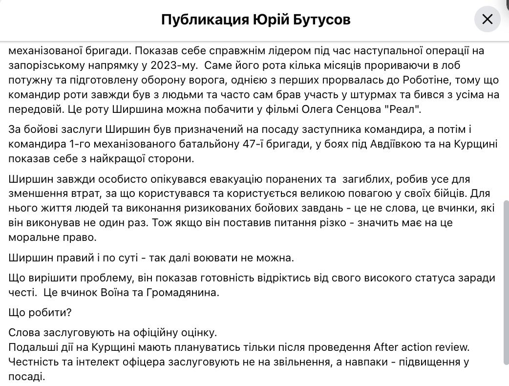 По его данным, комбат выступил против "некомпетентных решений украинского командования на Курщине".