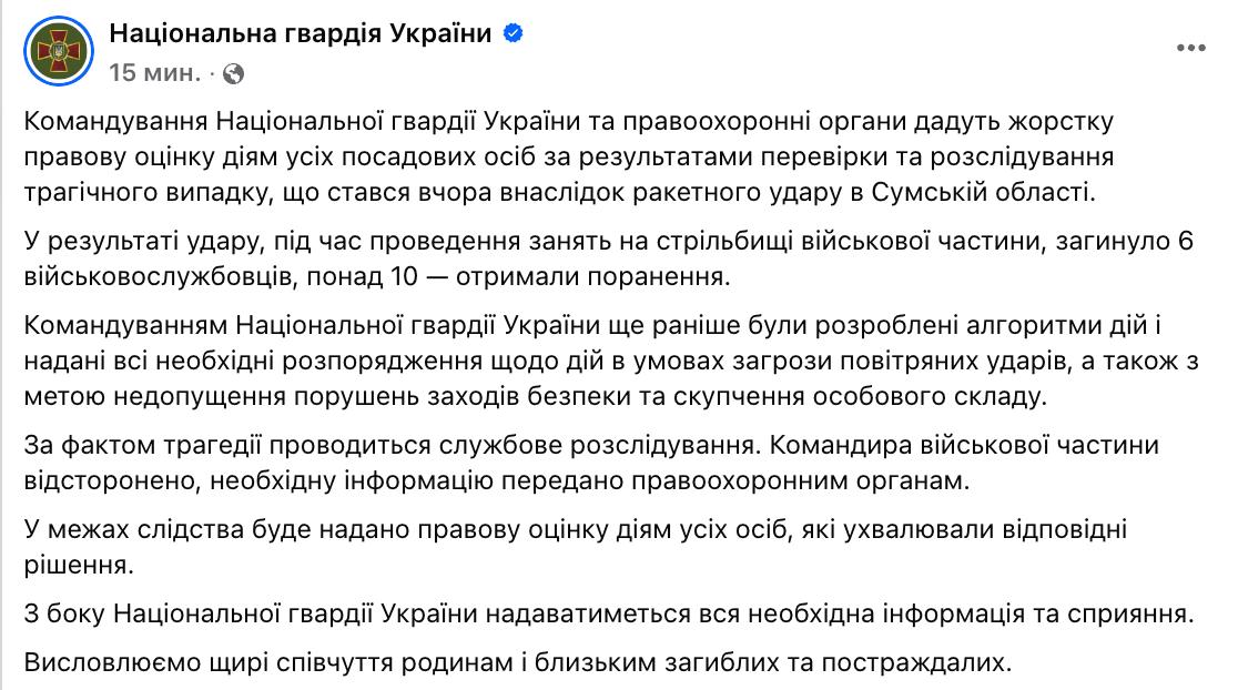 8.31 Нацгвардия официально подтвердила удар по полигону в Сумской области.