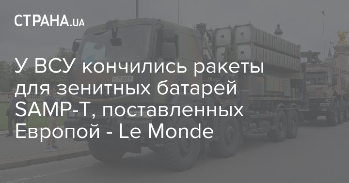 По словам другого источника Le Monde, "у Украины больше нет ракет для двух ее батарей SAMP-T, и она не получила ни одной ракеты за полтора года для зенитной системы ближнего действия Crotale".