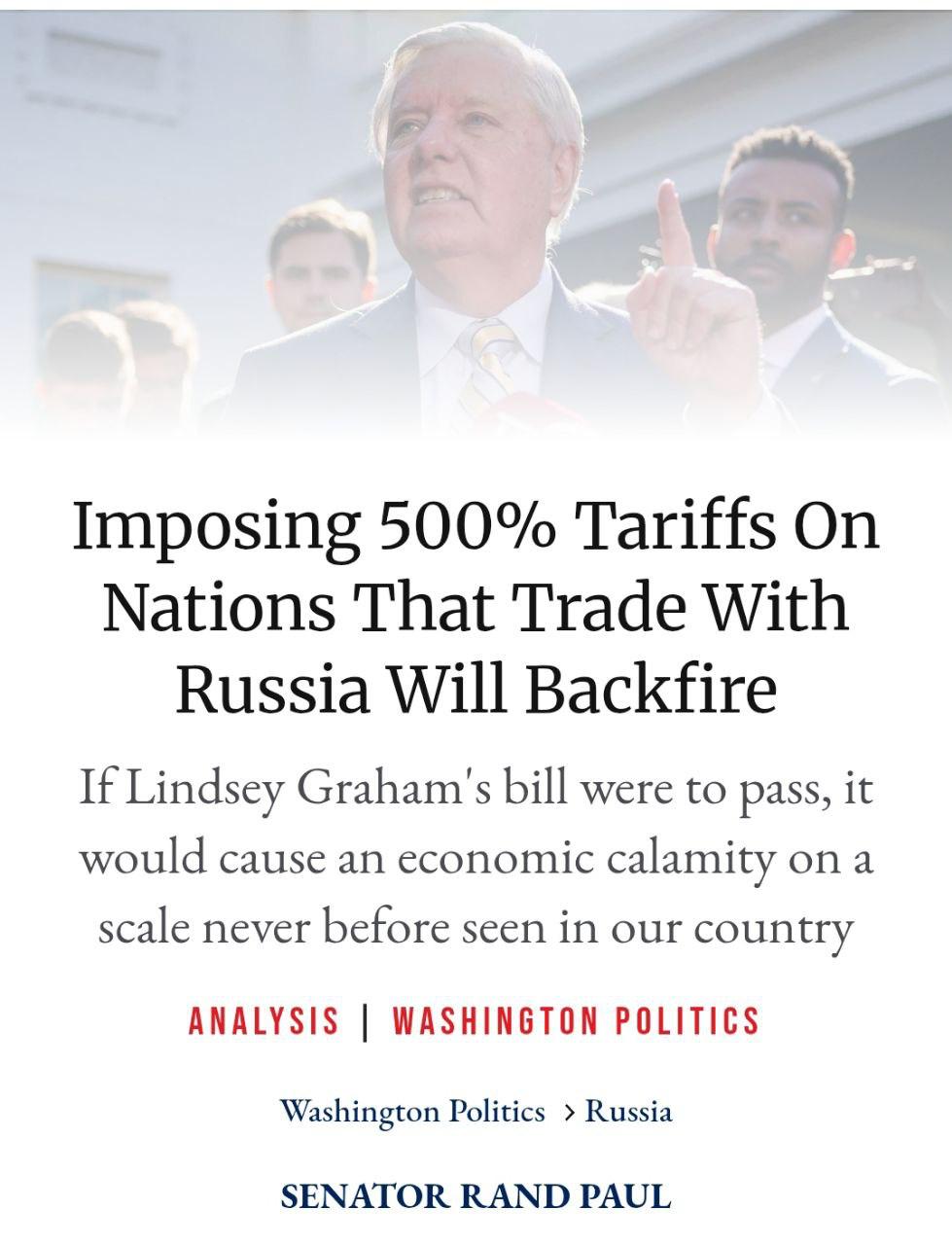 Пол называет "откровенно безрассудным" введение 500% вторичных тарифов для стран, которые торгуют с Россией.