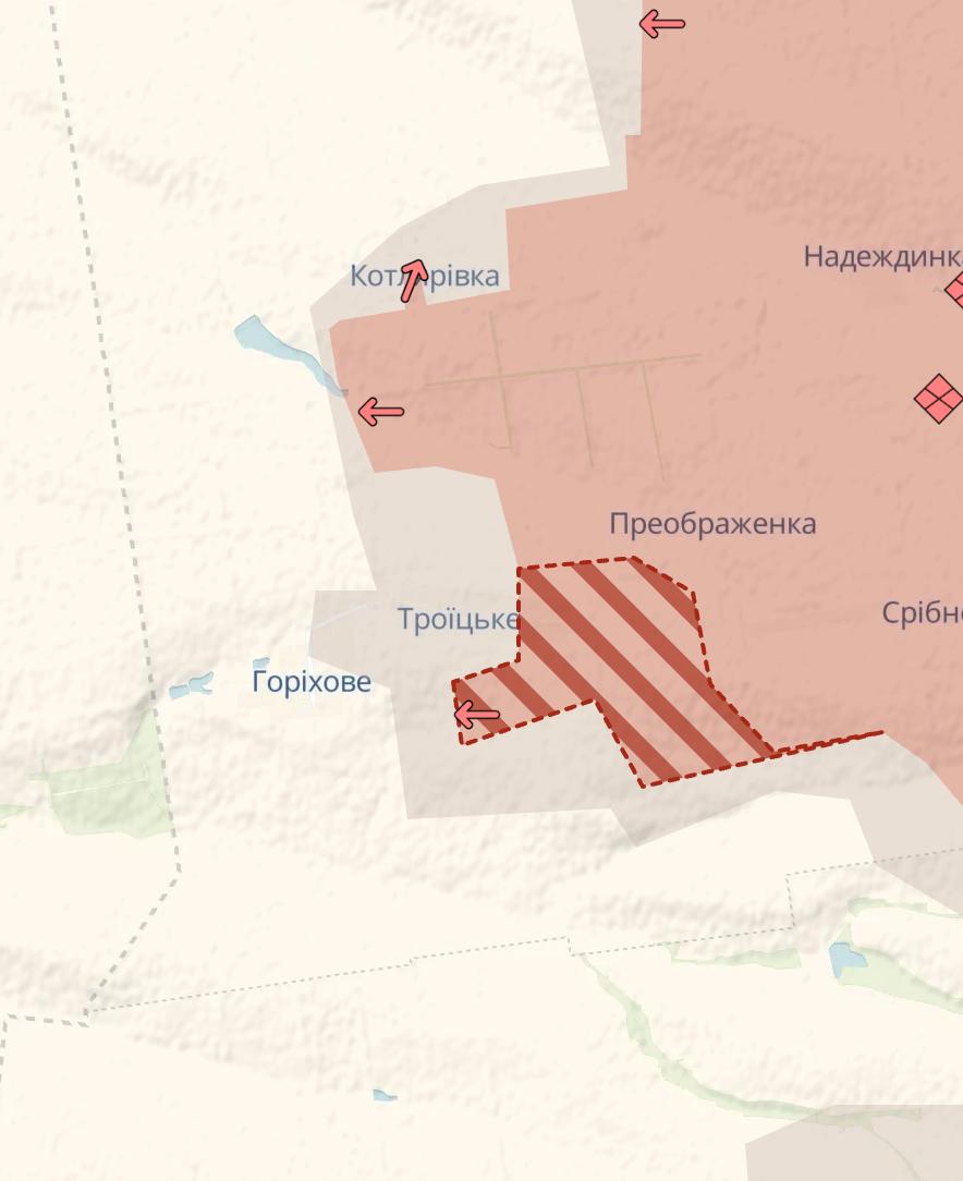 Также у РФ есть продвижение у границы Днепропетровской области - около Троицкого.