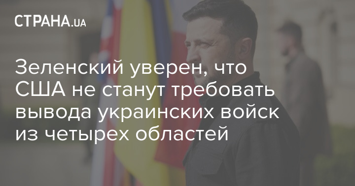 Президент Украины Владимир Зеленский считает, что США не будут призывать Украину согласиться на вывод войск из четырех областей, как требует Россия.