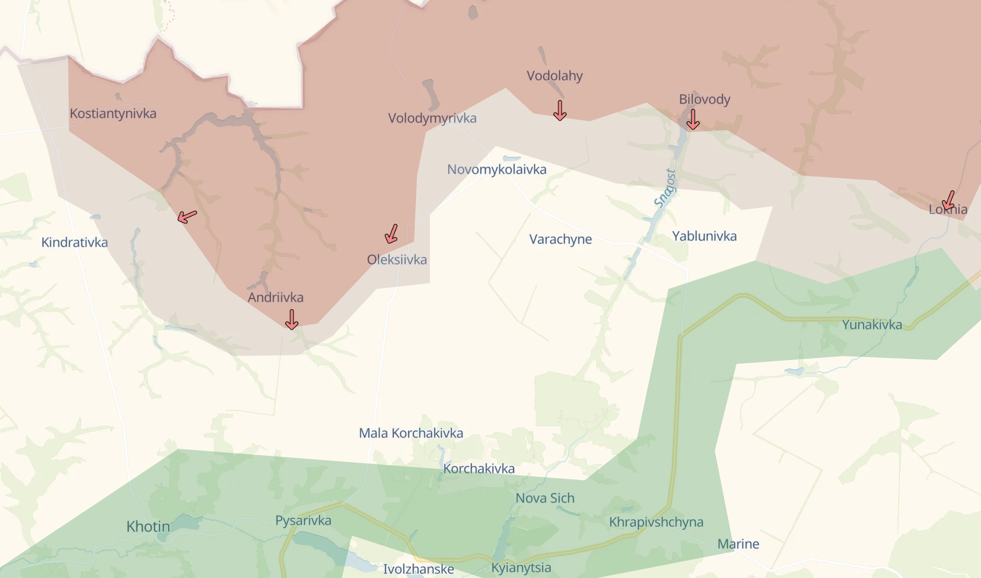 Также российские паблики утверждают, что их войска сегодня зашли на территорию Днепропетровской области западнее села Орехово и закрепились там. Украина этого не подтверждала. На карте Deep State, фронт в районе Орехового не изменился, а само село лишь частично в серой зоне.
