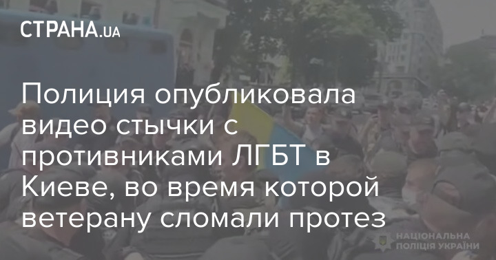 Полиция Киева опубликовала видео стычки с противниками ЛГБТ вчера в столице. Заявляется, что во время драки один из оппонентов ударил полицейского протезом руки.