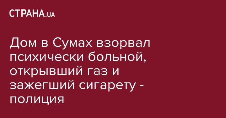 В полиции установили, что взрыв в многоэтажке в Сумах устроил психически нездоровый пенсионер, открывший вентили газовой плиты, пустивший газ и зажегший сигарету. Об этом сообщает пресс-служба управления Нацполиции в Сумской области