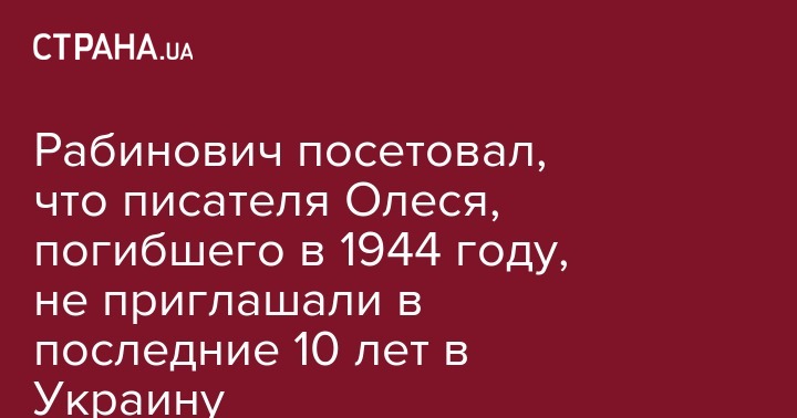 Рабинович посетовал, что писателя Олеся, погибшего в 1944 году, не приглашали в последние 10 лет в Украину
