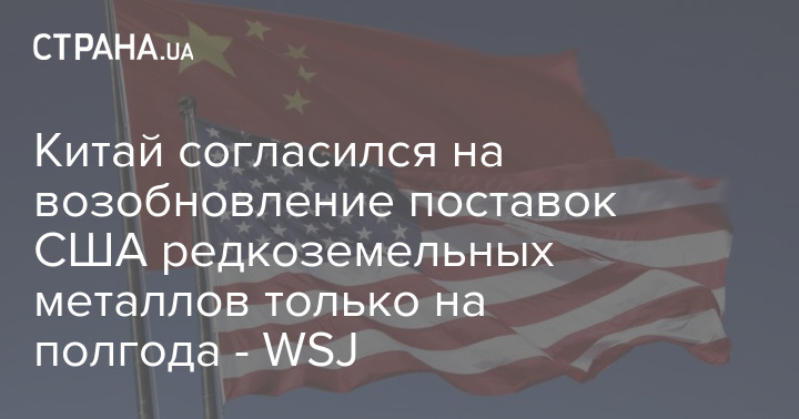 Китай согласился на возобновление поставок США редкоземельных металлов только на полгода, оставляя за собой рычаг влияния на случай новой торговой напряженности.