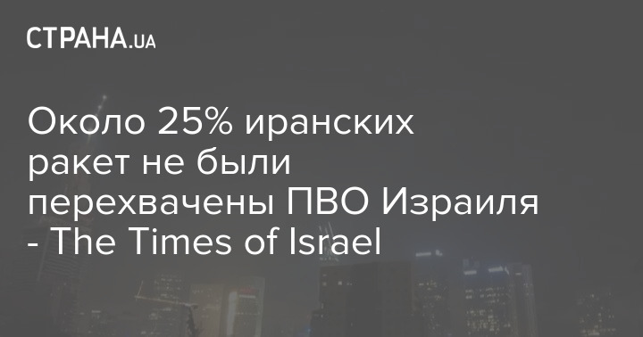 Около 25% иранских ракет, выпущенных прошлой ночью не были перехвачены системой противовоздушной обороны Израиля.