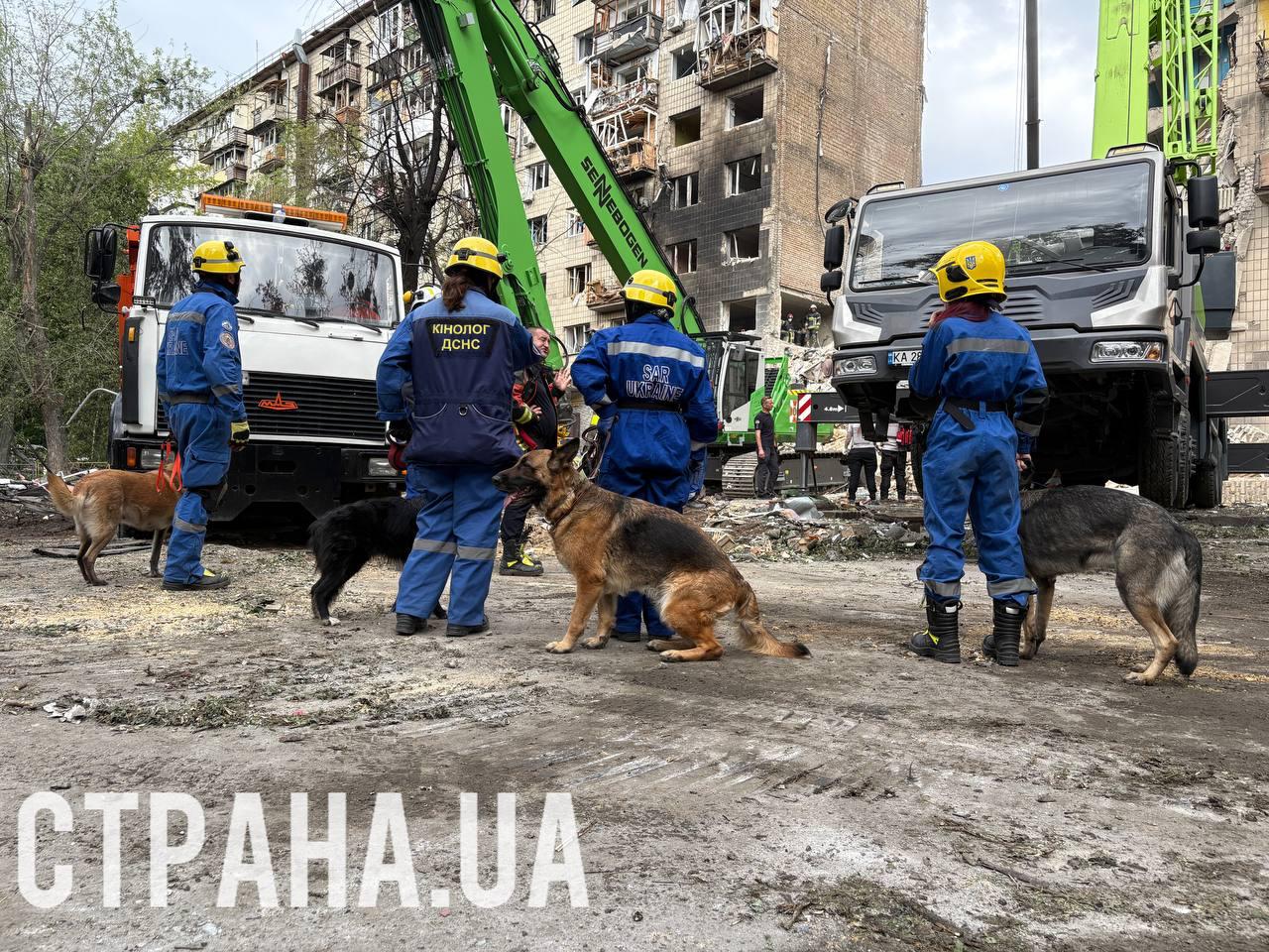 10.07 В Киеве на месте обрушения подъезда людей ищут кинологи с собаками.