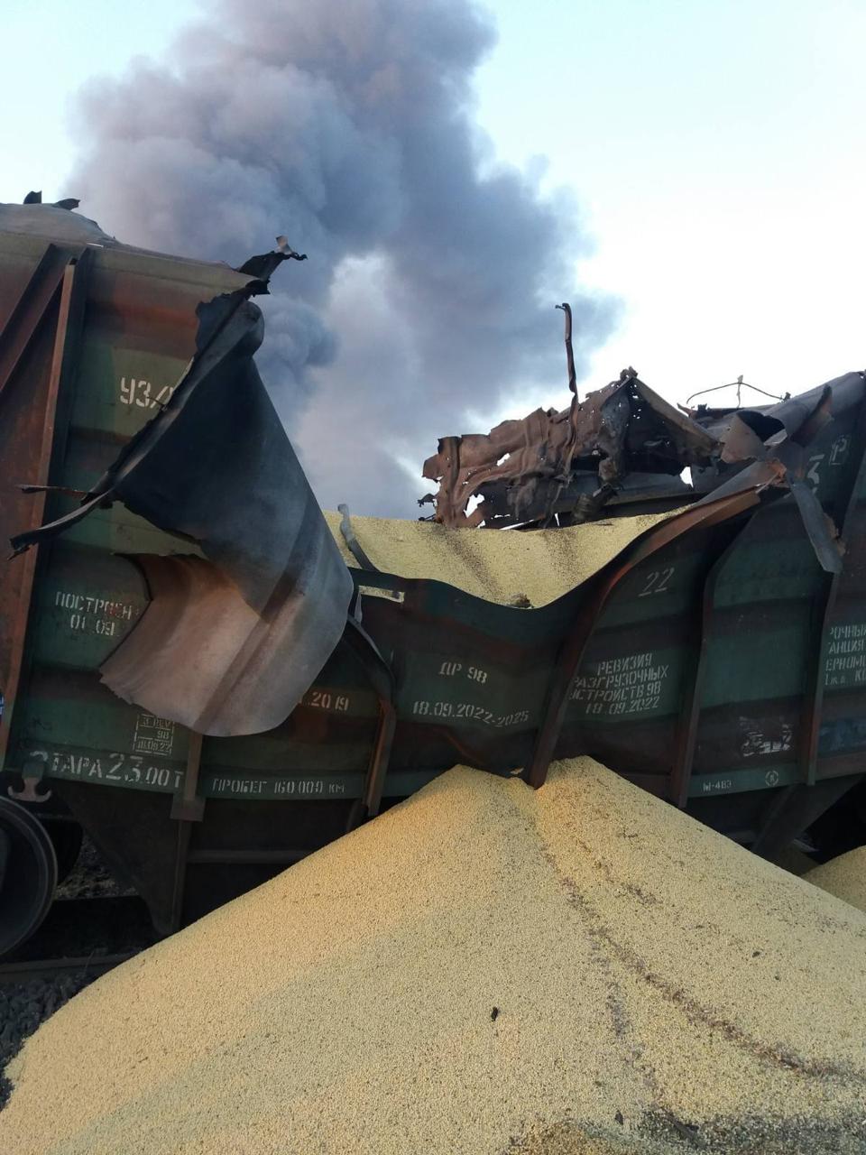 10.19 В Киеве ночной атакой повреждены вагоны с продовольствием, свидетельствуют фото "Укрзализныци".