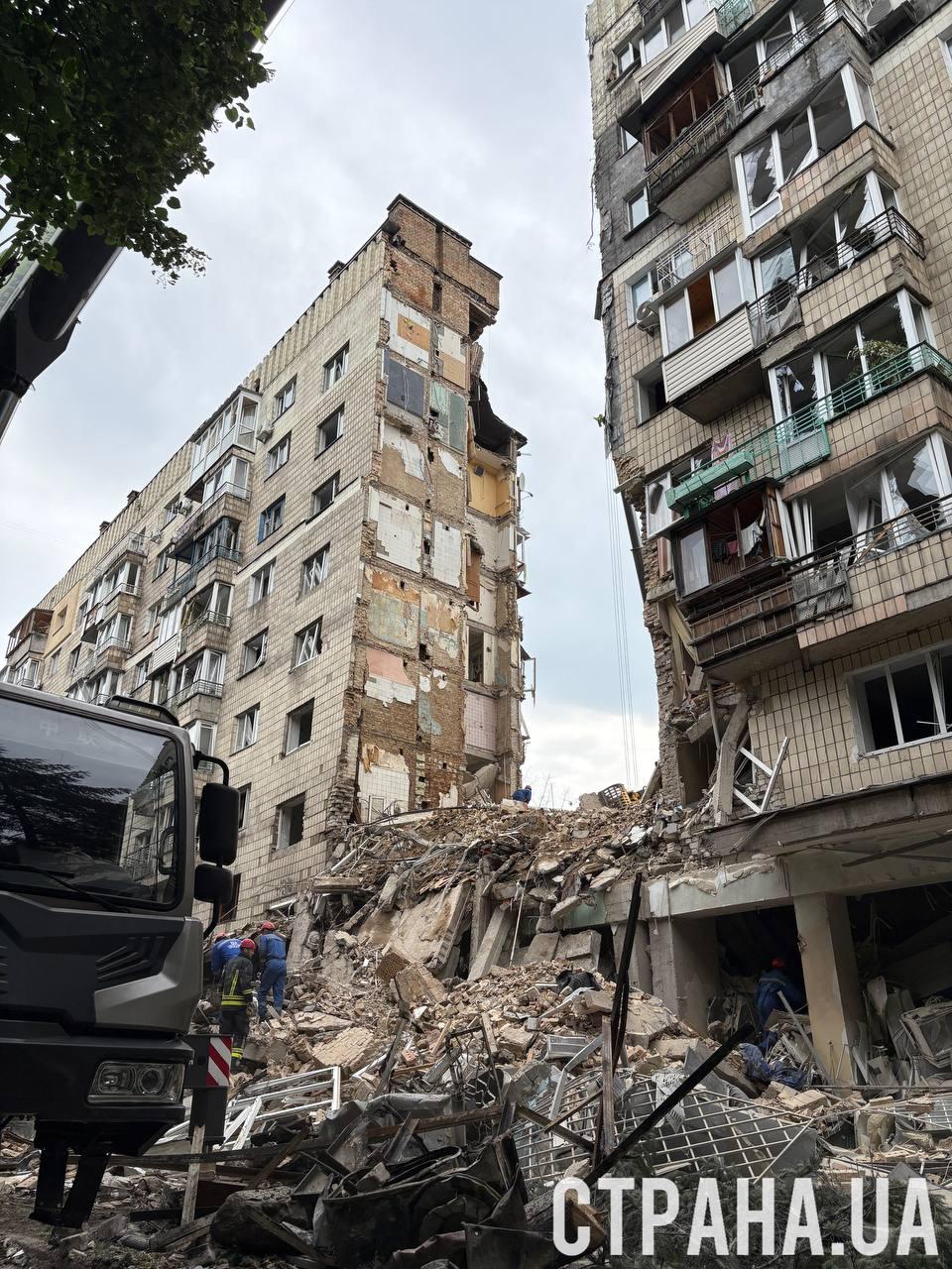 11.16 Существует угроза обрушения конструкций жилого дома в Соломенском районе Киева, где после попадания ракеты полностью разрушен один подъезд, сообщает ГСЧС.