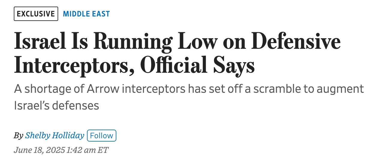 Истощение запаса ракет "вызывает обеспокоенность относительно способности страны противостоять баллистическим ракетам большой дальности Ирана", сказал источник издания. Вашингтон усиливает оборону Израиля с помощью наземных, морских и воздушных систем, а теперь "есть опасения, что США тоже исчерпают свои запасы перехватчиков", добавил он.