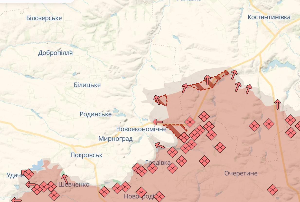 11:05 Армия РФ продвинулась на трех участках к востоку от Покровска и захватила село Шевченко Первое, сообщает Deep State.