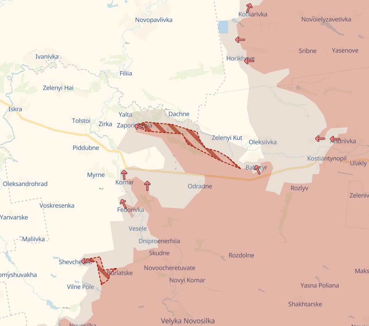 Российские войска продвинулись в направлении Запорожской и Днепропетровской областей - со стороны Великой Новоселки, а также по линии Запорожье - Богатырь.