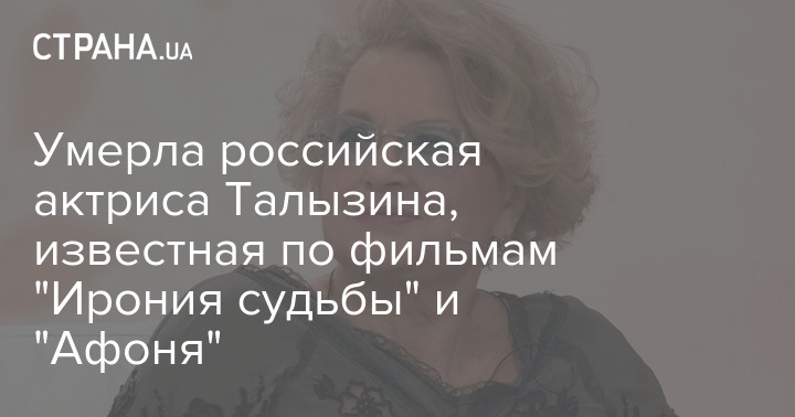 Из жизни ушла советская и российская актриса Валентина Талызина. Ей было 90 лет. Об этом сообщается в пресс-службе Театра Московского совета.