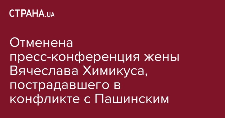 Пресс-конференцию жены Вячеслава Химикуса, в которого стрелял нардеп Сергей Пашинский, Ольги Химикус отменили. Об этом сообщает агентство "Интерфакс-Украина", где и должно было пройти мероприятие.