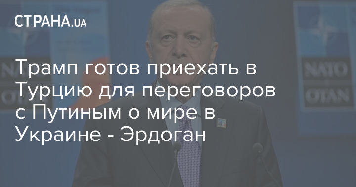 Президент СШ Дональд Трамп готов приехать в Турцию для переговоров с Владимиром Путиным о мире в Украине.