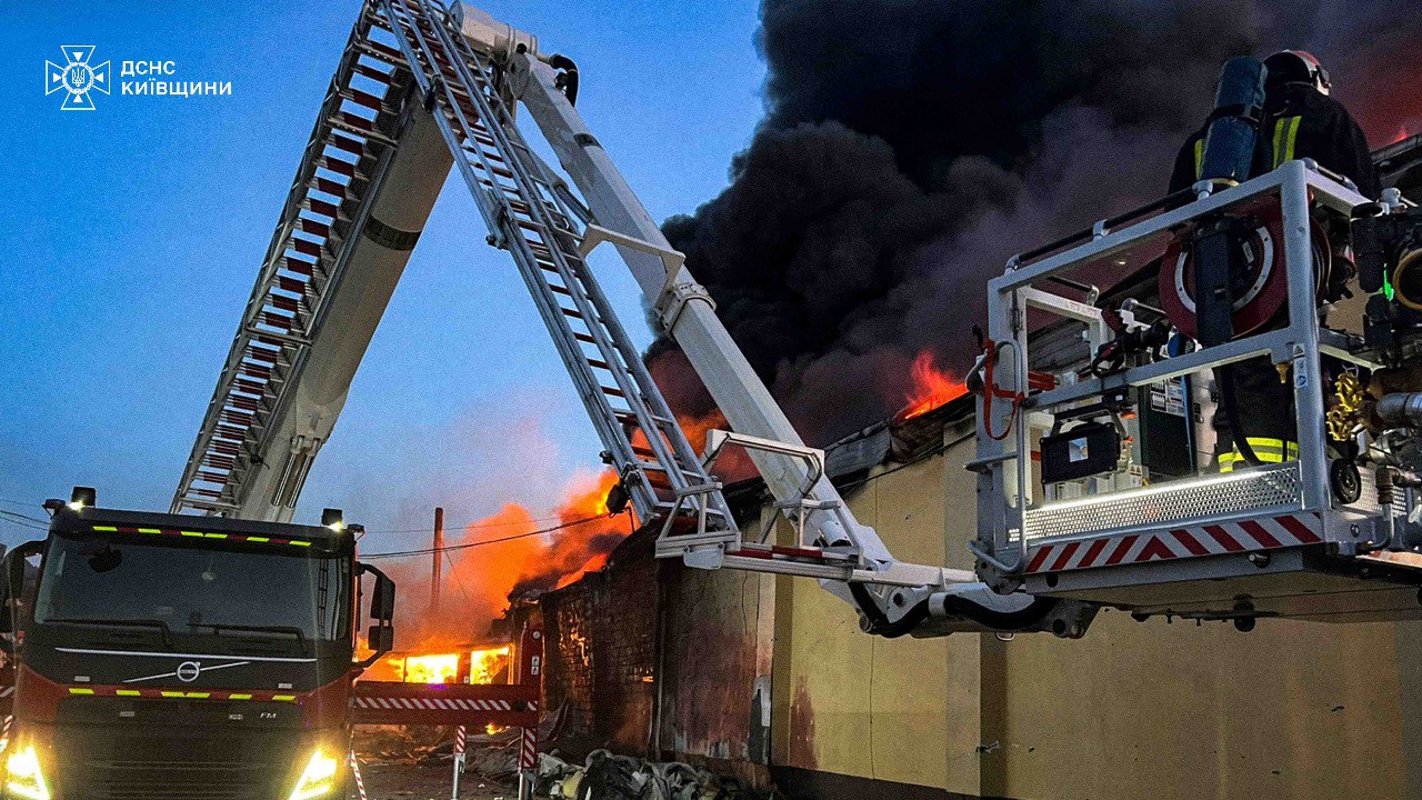 Также произошел пожар в складском здании, на территории СТО и гаражного кооператива. В то же время сообщалось, что разрушения произошли и в Днепровском, Святошинском, Дарницком, Шевченковском районах Киева.