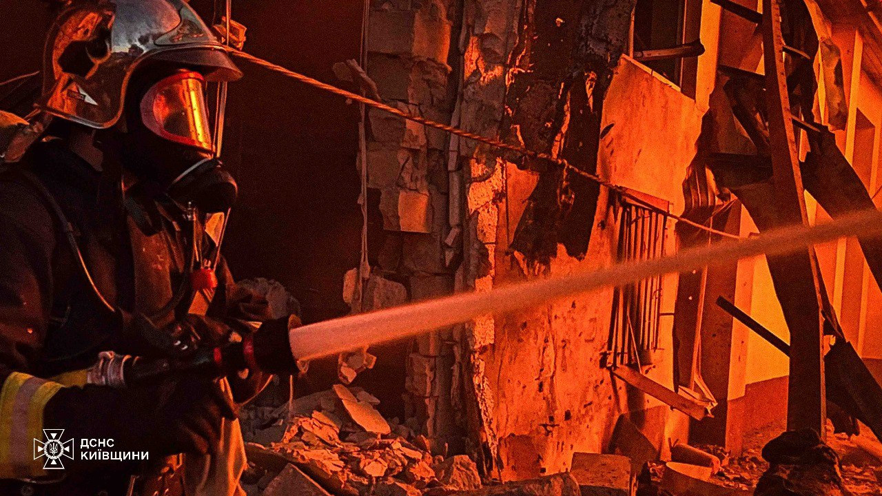 В Соломенском районе столицы из-за атаки произошло частичное разрушение 5-этажки. Возник пожар кровли 7-этажки на площади 2000 кв. м.