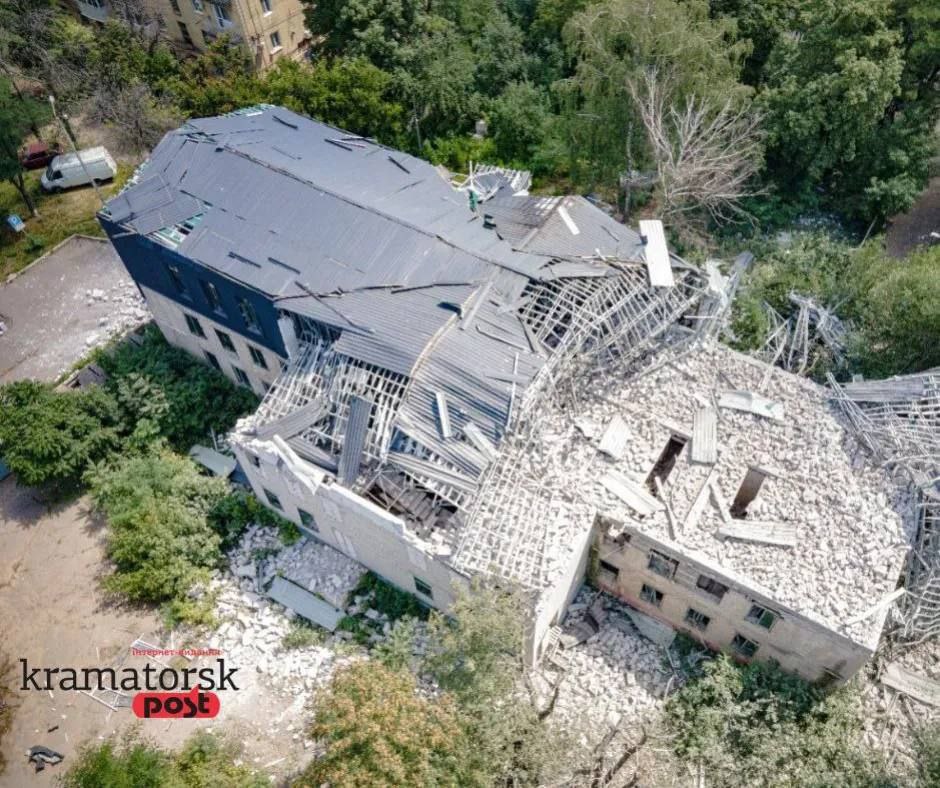 17:55 Последствия ночного прилёта по Краматорску. Сильно пострадало здание бывшего детсада.