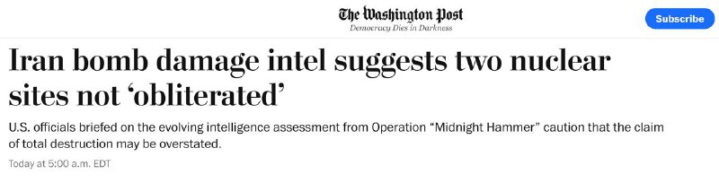 "Мы не можем определенно сказать, что она была полностью уничтожена", - сказал изданию близкий к конгрессу американский чиновник об инфраструктуре иранской ядерной программы.