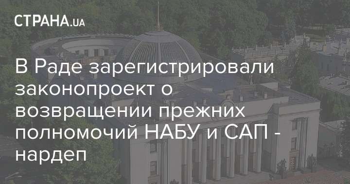 В Раде зарегистрировали законопроект о возвращении прежних полномочий НАБУ и САП - нардеп