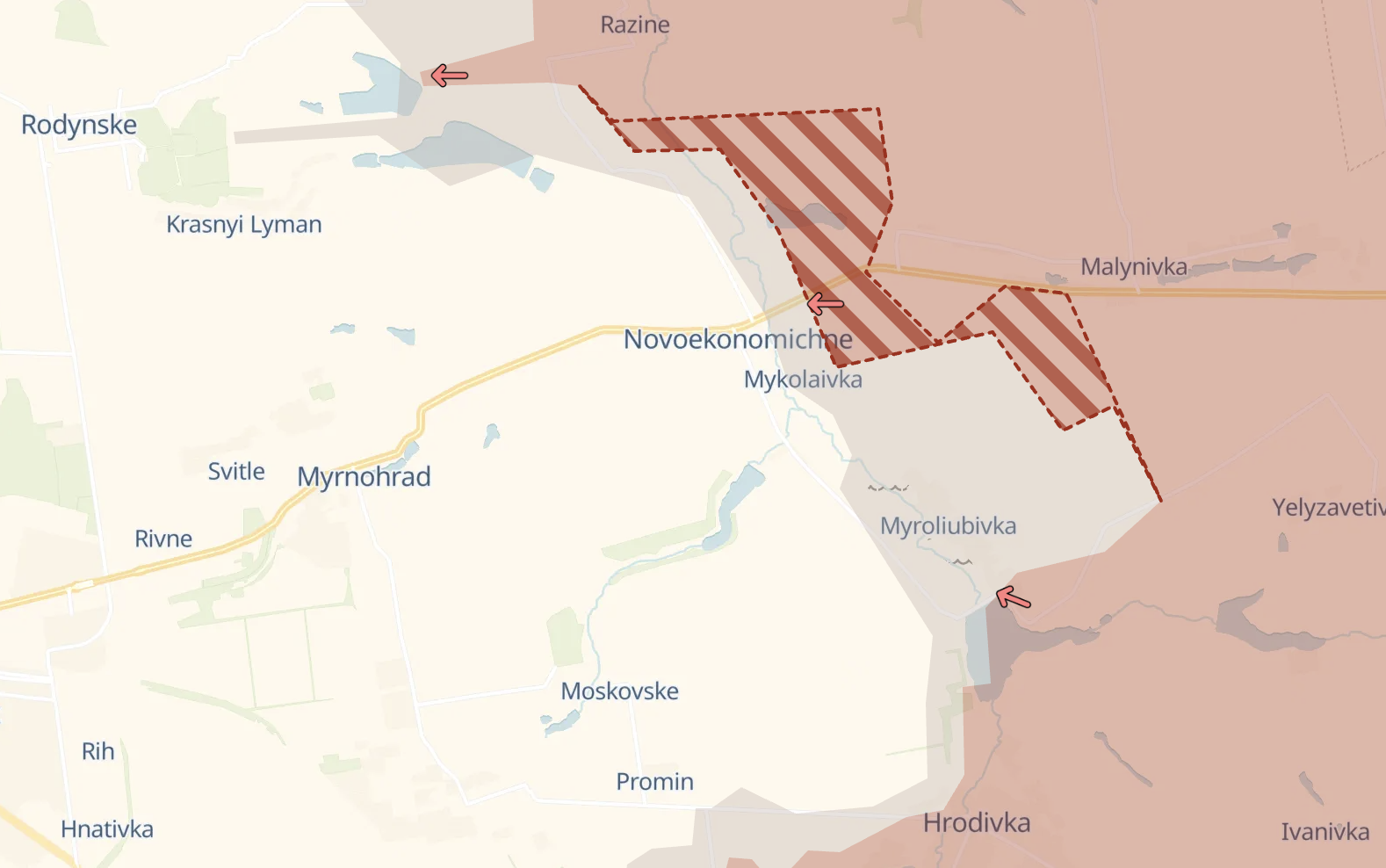 Продвижение было широким фронтом - к северу и югу от трассы на Покровск. Некоторые российские паблики утверждают, что Новоэкономисеское уже полностью захвачено РФ. Украинские источники этого не подтверждали.