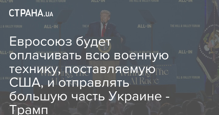 Евросоюз будет оплачивать всю военную технику, поставляемую США, и отправлять большую часть Украине - Трамп