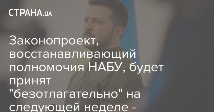 Законопроект, восстанавливающий полномочия НАБУ, будет принят "безотлагательно" на следующей неделе - Зеленский