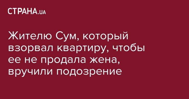 Жителю Сум, который взорвал квартиру, чтобы ее не продала жена, вручили подозрение
