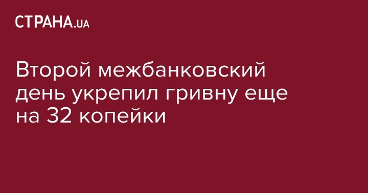Второй межбанковский день укрепил гривну еще на 32 копейки