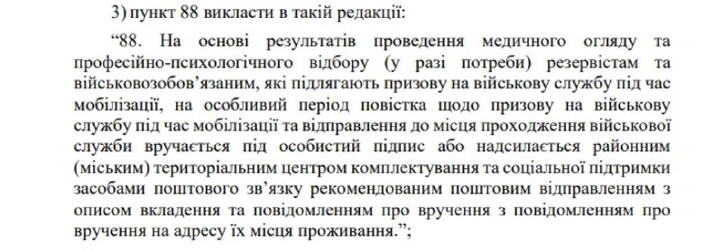 Как сказано в документе, боевую повестку могут отправить гражданам, прошедшим военно-врачебную комиссию и не имеющим отсрочки. Повестку будут доставлять ценным письмом. Отказ от его получения будет расцениваться как уклонение от мобилизации и повлечет уголовную ответственность.