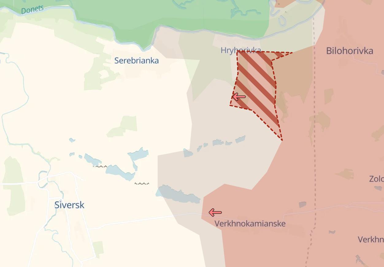 Под Северском же армия РФ смогла продвинуться в Григорьевке, что в направлении Серебрянки.