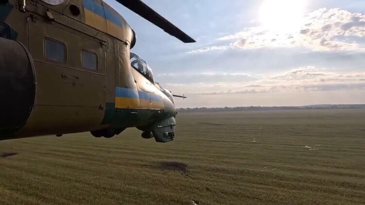 Видео, снятое с боевого вертолёта ВСУ, публикуют телеграм-каналы.