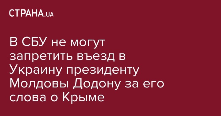 Служба безопасности Украины  объяснила, почему не может запретить въезд в страну президенту Молдовы Игорю Додону за его высказывания о том, что Крым является российским. Об этом говорится в ответе ведомства на запрос "РБК-Украина".