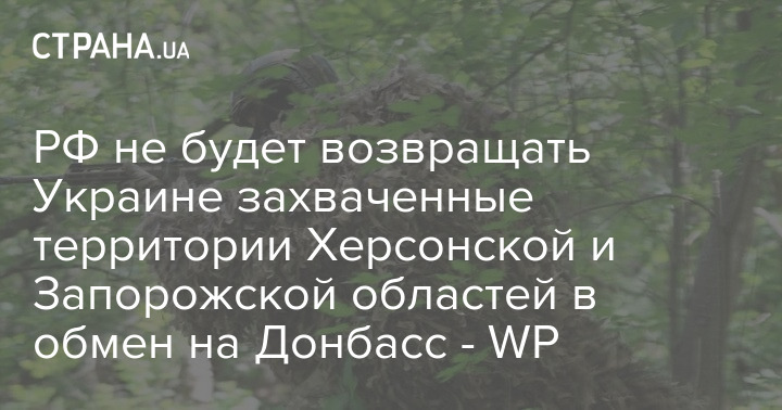Москва не будет возвращать Украине в обмен на Донбасс захваченные РФ территории Херсонской и Запорожской областей, поскольку они прикрывают сухопутный коридор в Крым.