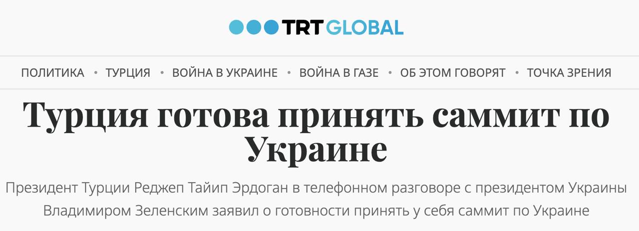 Также, по словам украинского президента, его турецкий коллега поддержал позицию Киева, что "любые переговоры без Украины не принесут постоянный мир".