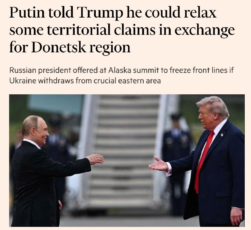 18:39 Еще одно западное СМИ пишет, что Путин во время встречи с Трампом потребовал вывода ВСУ из Донецкой области в качестве условия для прекращения войны.