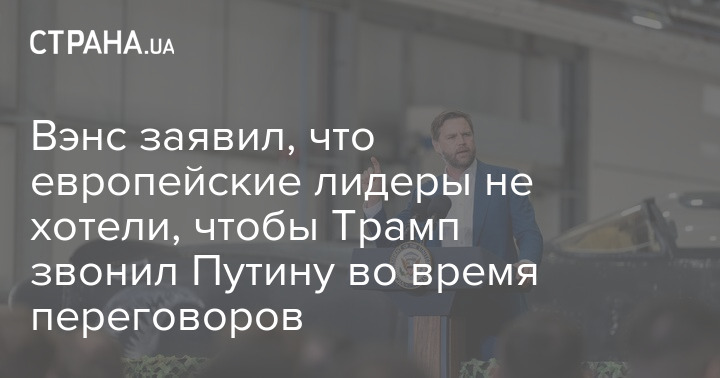 Вэнс заявил, что европейские лидеры не хотели, чтобы Трамп звонил Путину во время переговоров