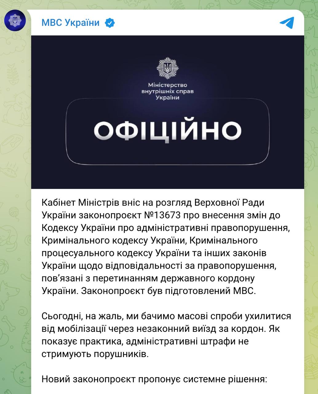 12:51 МВД сообщает, что это оно разработало законопроект об уголовной ответственности за незаконный выезд за границу, внесенный в Раду премьером Свириденко.