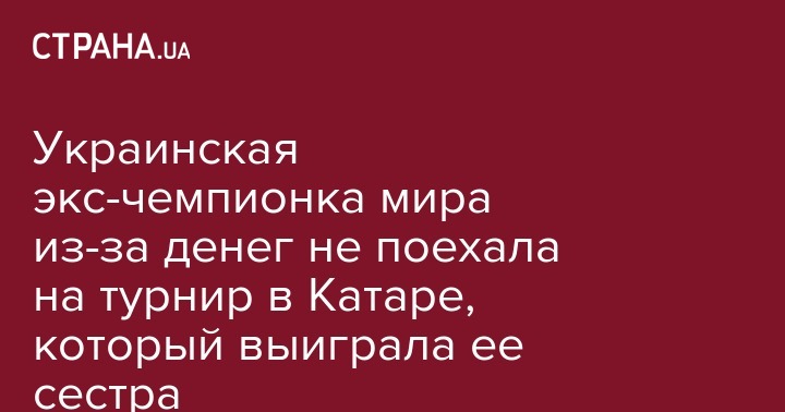 Экс-чемпионка мира по шахматам Мария Музычук не участвовала в чемпионате мира по быстрым шахматам и блицу, который проходил в катарской столице Дохе, из-за недостаточного финансирования. Об ее сестра - Анна, рассказала в интервью изданию galinfo.