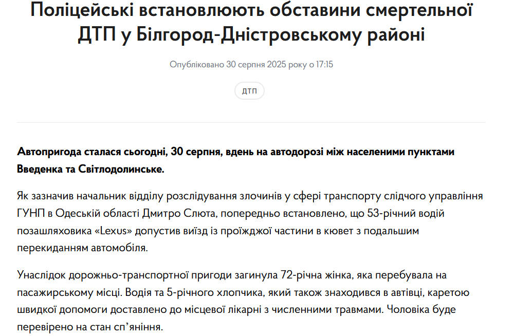 Мэр Рени с матерью и пятилетним сыном попал в смертельное ДТП под Одессой. Женщина погибла