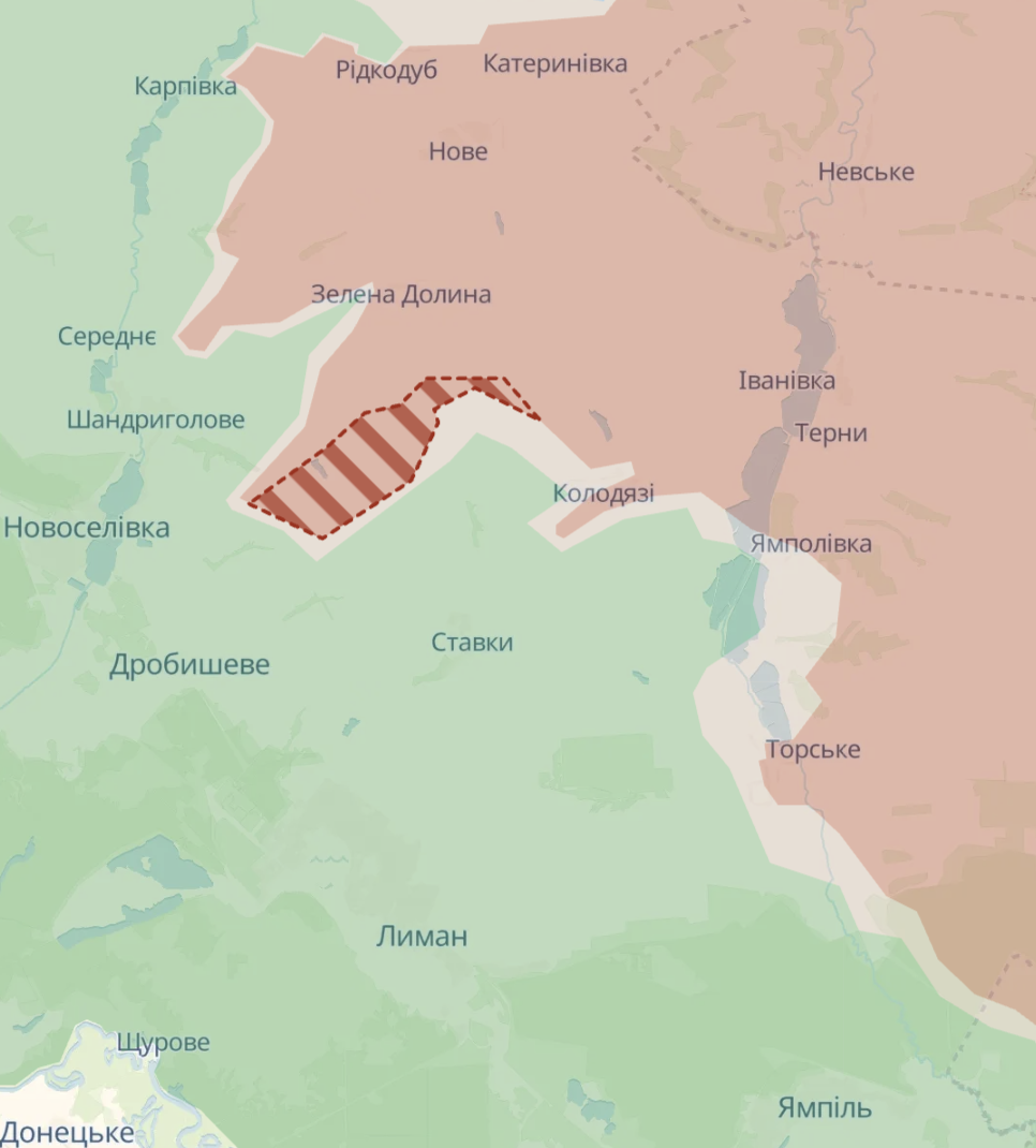 Также российские войска продвинулись к северу от Лимана - в районе сел Колодязи и Дерилово, пишет Deep State.