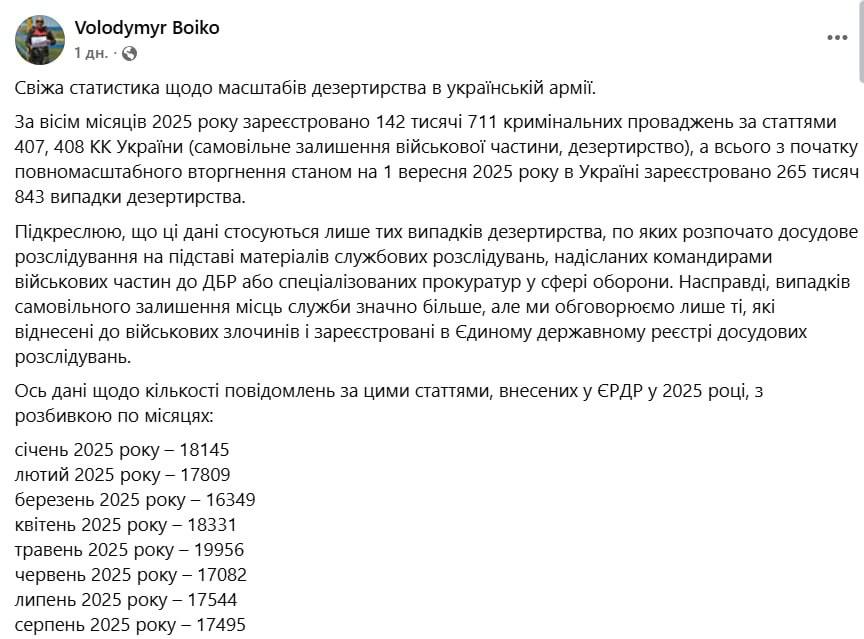 Больше всего из ВСУ дезертировали в мае - 19 956 человек. В летние месяцы показатель держится на уровне более 17 тысяч человек.