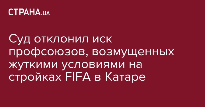 Арбитражный суд Цюриха отклонил иск трех профсоюзных организаций к Международной федерации футбола (FIFA) в связи с подготовкой к Чемпионату мира 2022 года в Катаре. Об этом говорится в сообщении пресс-службы FIFA.