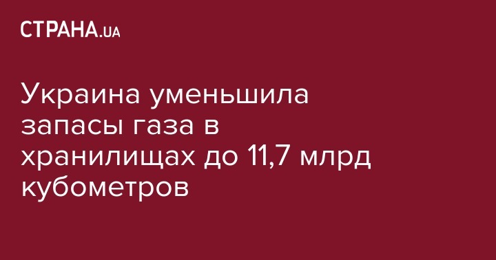 Украина уменьшила запасы газа в хранилищах до 11,7 млрд кубометров