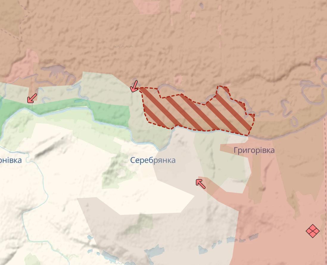 Российские войска снова продвинулись в Серебрянском лесничестве, свидетельствует карта военного паблика Deep State.