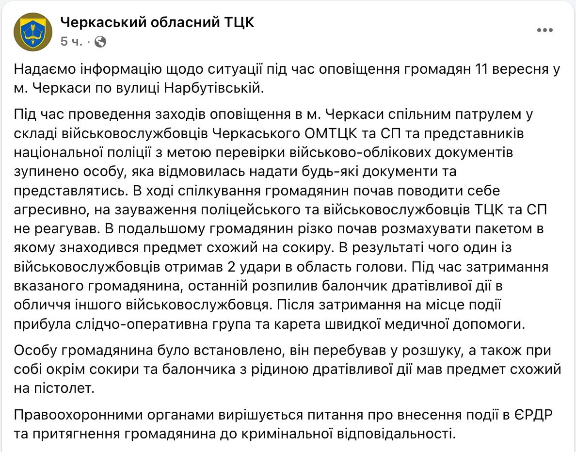 Об этом сообщает пресс-служба Черкасского областного ТЦК.